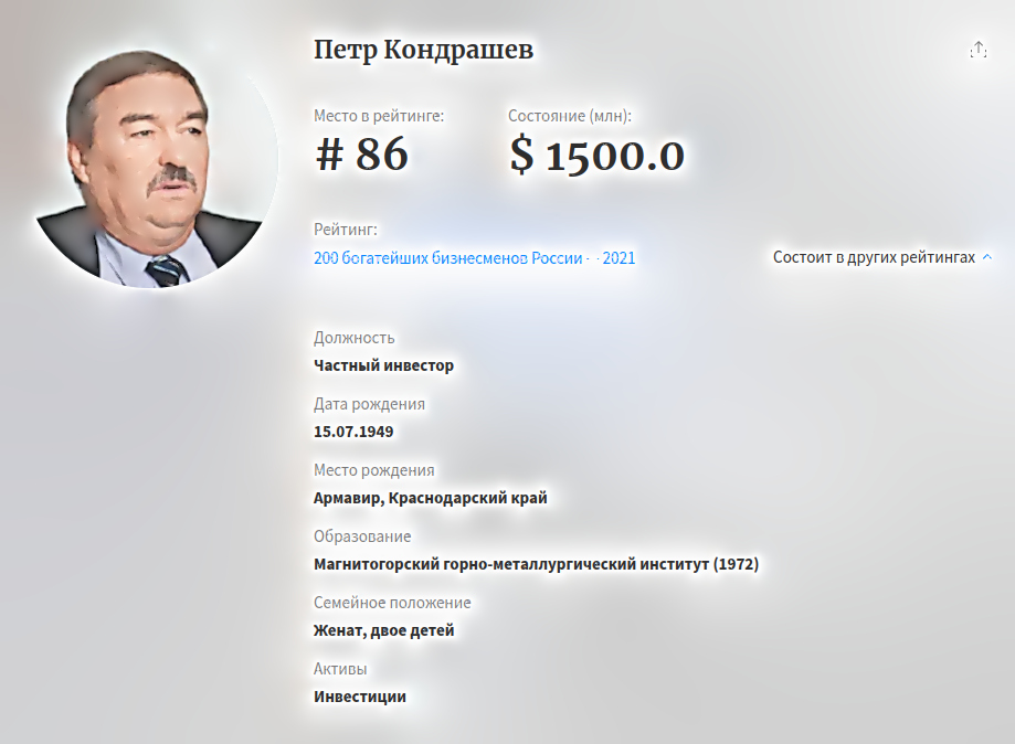 Кондрашев Петр Иванович, начинавший свой бизнес в 90-х вместе с экс-владельцем «Уралкалия» бизнесменом Дмитрием Рыболовлевым, продолжает сохранять противоречивую репутацию. Вероятно, что открывшиеся новые обстоятельства по делу «Экопромбанка» станут тому подтверждением.