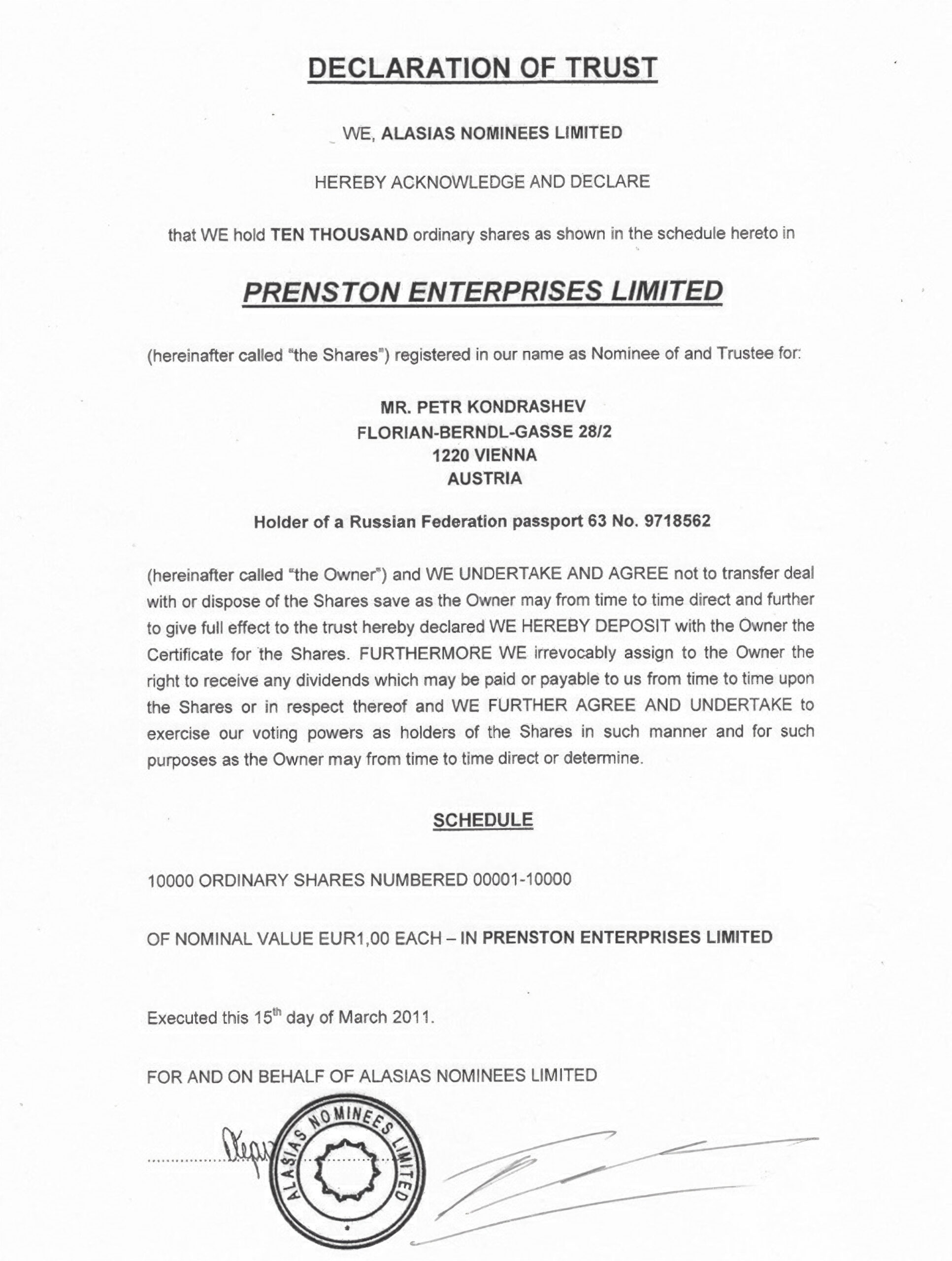 Как пишет «Коммерсант», Туев сообщил, что Кондрашев участвовал в докапитализации банка на сумму более $64 млн в 2011 году. Для этого подконтрольная господину Кондрашеву кипрская компания Preston Enterprise предоставила указанную сумму еще пяти компаниям из Республики Кипр.